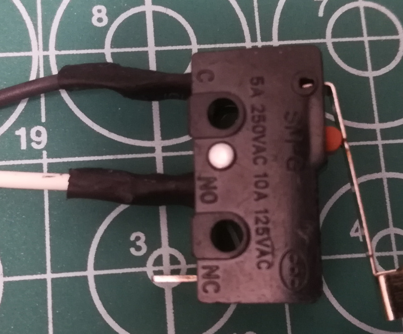 購入したリミットスイッチは、ケーブルが接続されていないので、別途、電線を半田付けし、伸縮チューブ利用して半田部分をカバーしました。